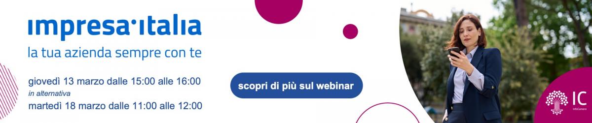 Infocamere, in collaborazione con le Camere di Commercio, organizza due webinar dedicati all’App di Infocamere "Impresa italia" per scoprire tutte le funzionalità che possono semplificare la gestione dell'impresa.